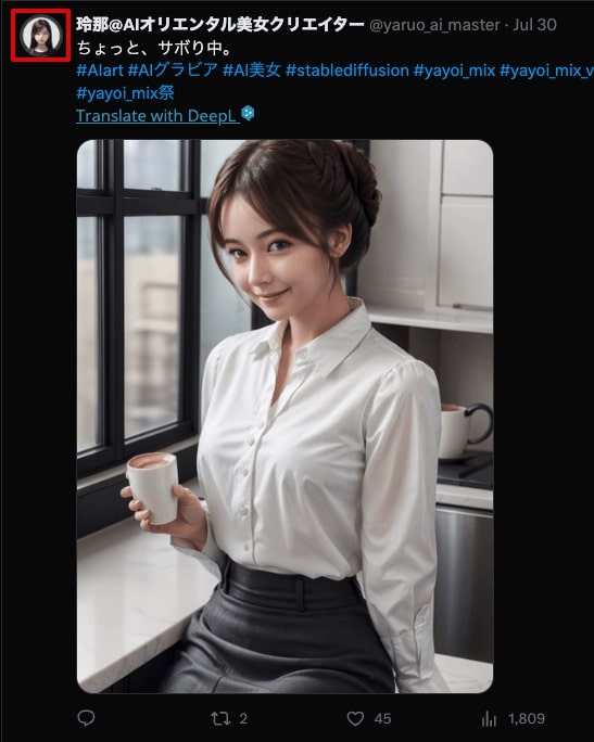 作成したAIイラストをSNSに設定していきます。SNSによっては、拡大して位置を変えることもできますので、出来る限り顔が中心になるように設定します。