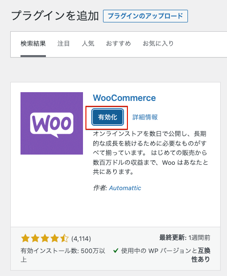 WooCommerceプラグインのインストール