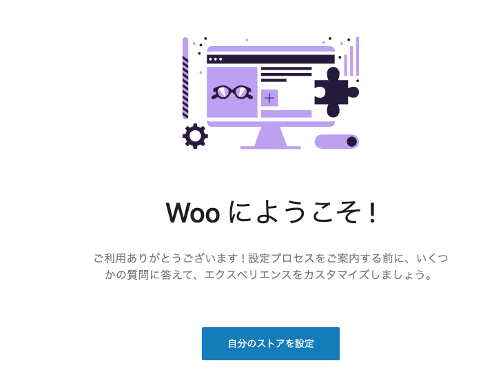 WooCommerceプラグインの設定ウィザードが開始します。「自分のストアを設定」ボタンをクリックします。