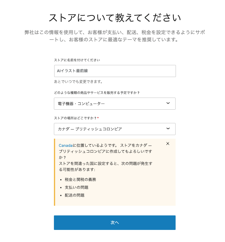 設定が完了しましたら「次へ」ボタンをクリックします。