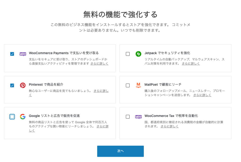 • Googleリストと広告で販売を促進(AdWordsは後からでも可能なのでOFF)