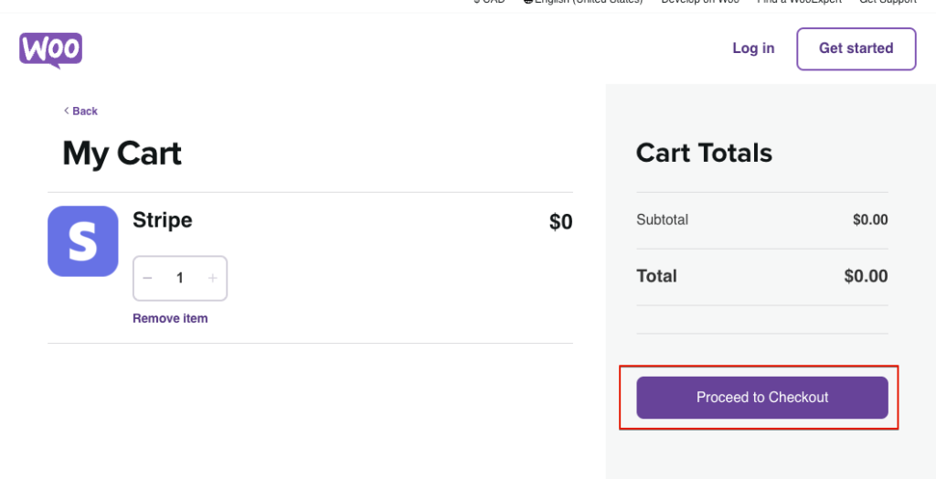 無料ではありますがストアでの決済を行うため、「Proceed to Checkout」ボタンをクリックします。