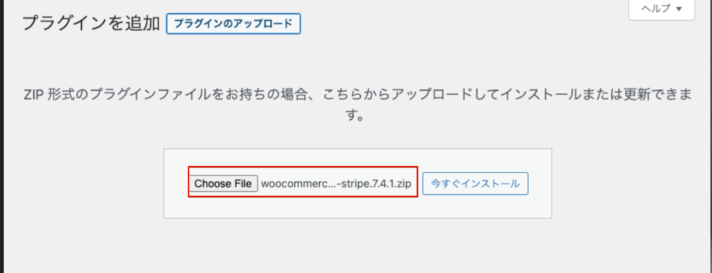 ファイル選択ボタンをクリックし、先ほどダウンロードしたファイルをアップロードし、「今すぐインストール」ボタンをクリックします。
