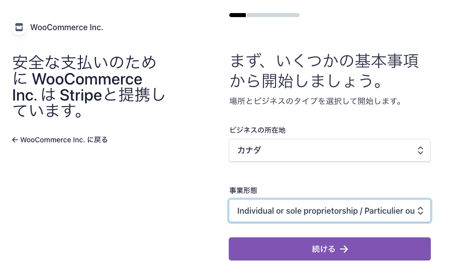 事業形態を聞かれますので「個人」を選択し「続ける」ボタンをクリックします。