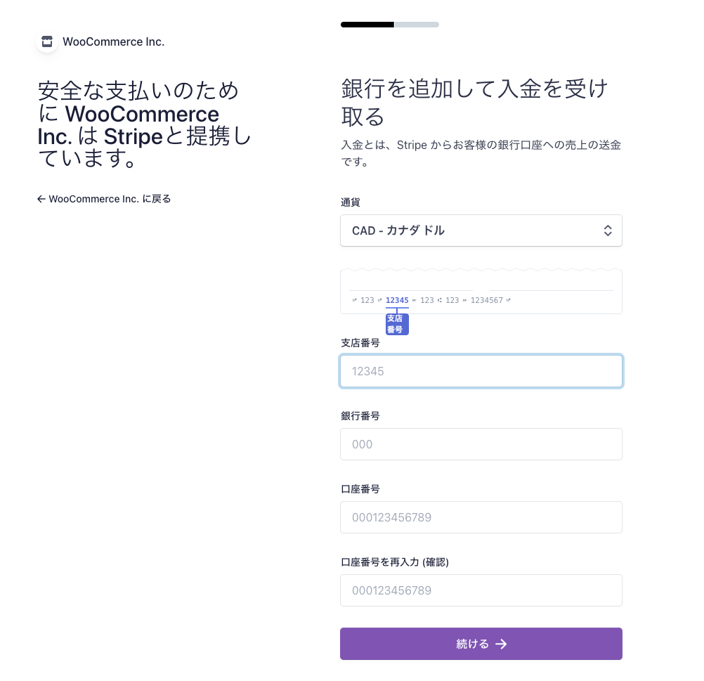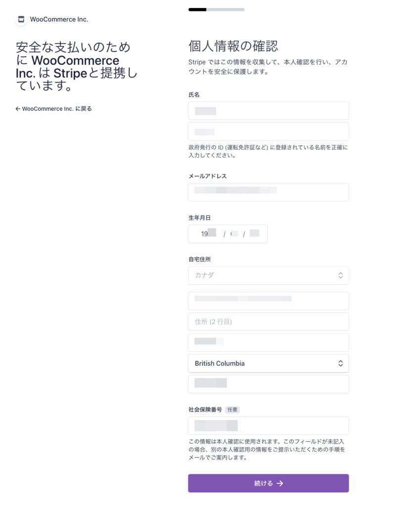 個人情報を入力し、「続ける」ボタンをクリックします。