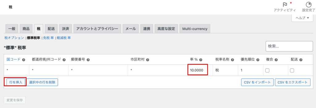「行を挿入」ボタンをクリックし、率「10%」の設定を行います。