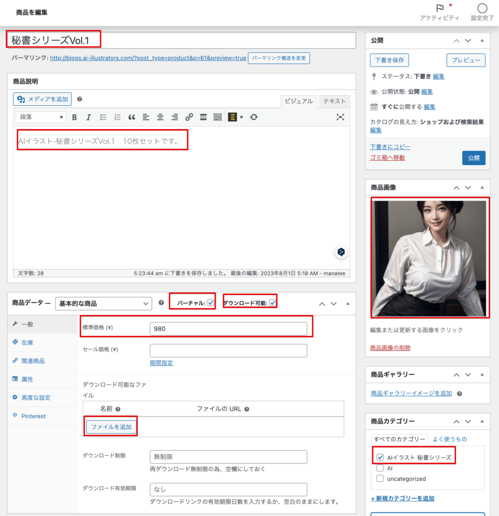 販売用のAIイラストの圧縮ファイルを作成し、AIイラストを挿入します。